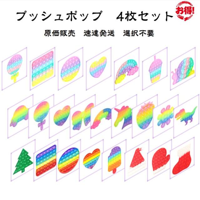 プッシュポップ 4枚セット お得 バブル 安い パズル ブロック スクイーズ 知育玩具 ガチャガチャ シリコン プチプチ カラフル おもちゃ 子供 プレゼント