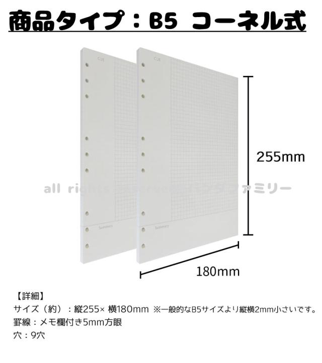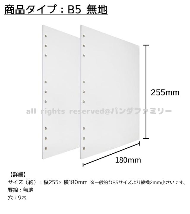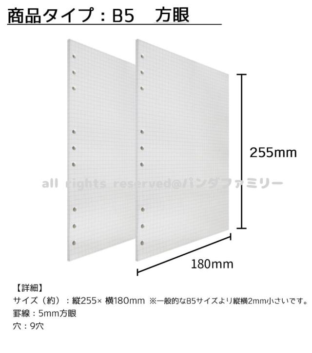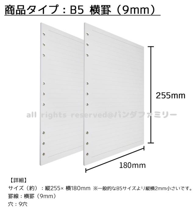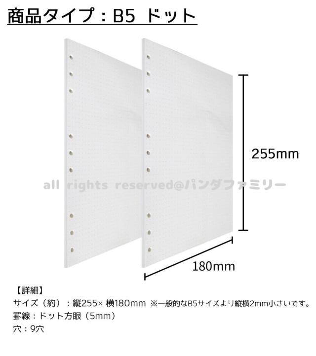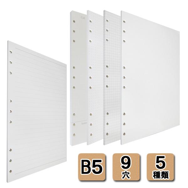 送料無料 1000円 リフィル ルーズリーフ B5 9穴 90枚 システム手帳用 罫線 横罫 9mm 5mm方眼 ドット方眼 無地 書きやすい 上質紙 ファスナー付き ポケット d9notepaper002b5