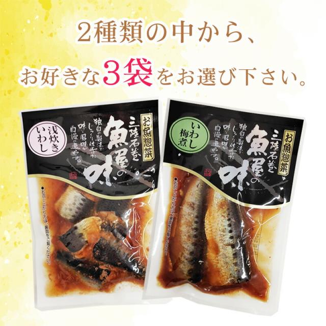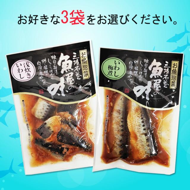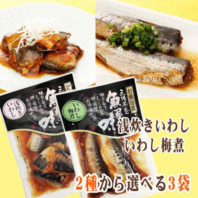 いわし 国産 梅煮 浅炊き 2種から選べる3袋 保存料・化学調味料不使用 時短商品 送料無料 メール便 NP [選べるいわし×3袋 山徳平塚 BS] 即送