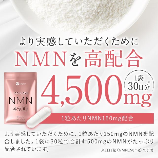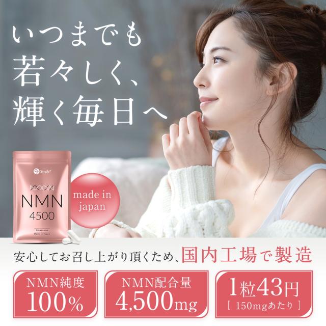 NMN サプリ 日本製 純度100% 4500mg 国内製造 サプリメント 30日分 カプセル SIMPLE+ スキンケア