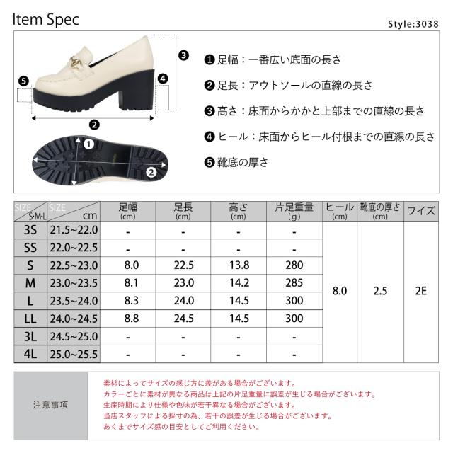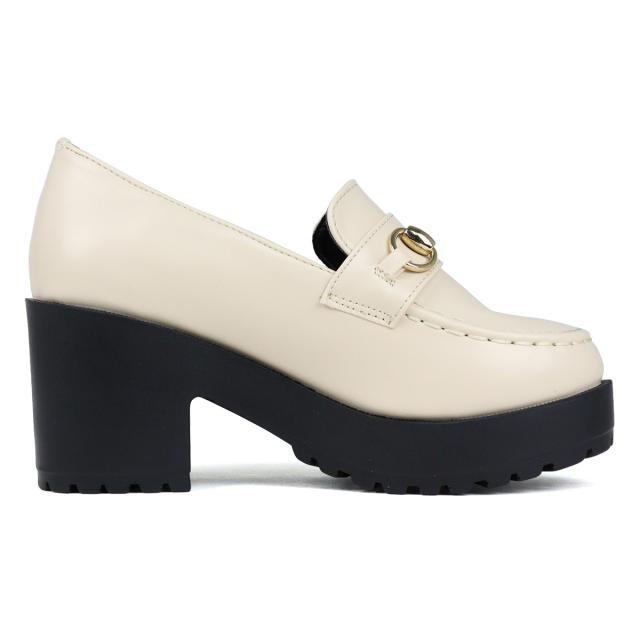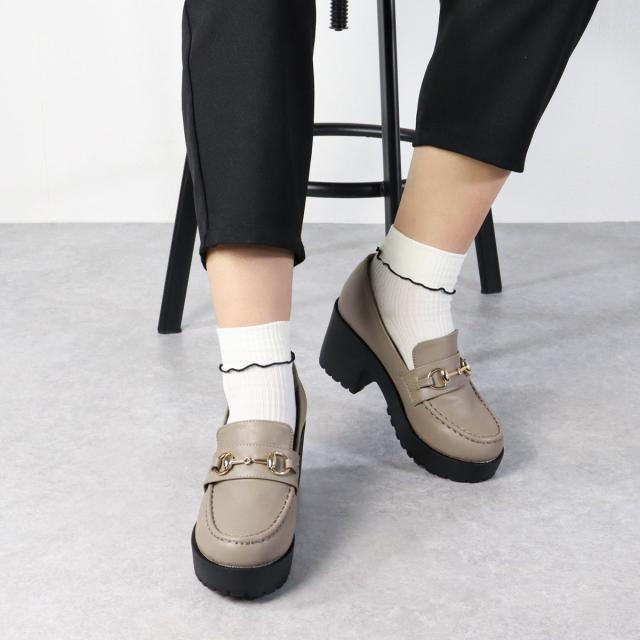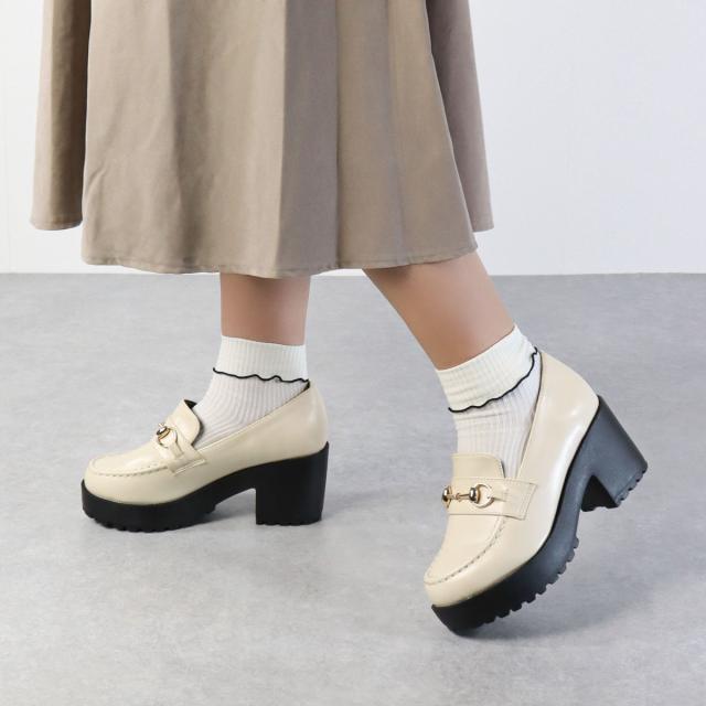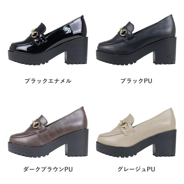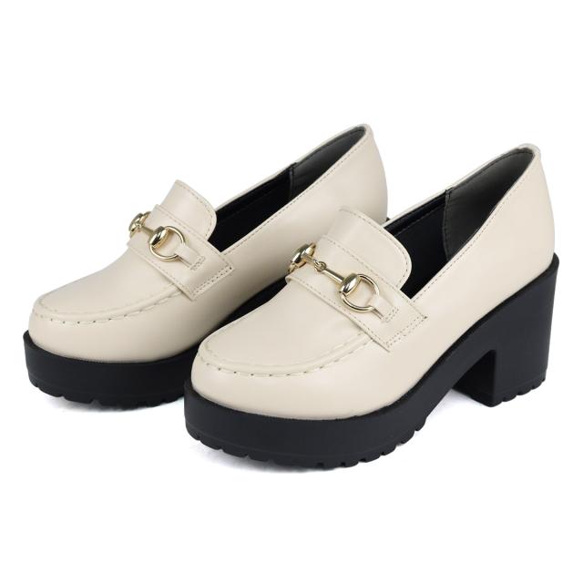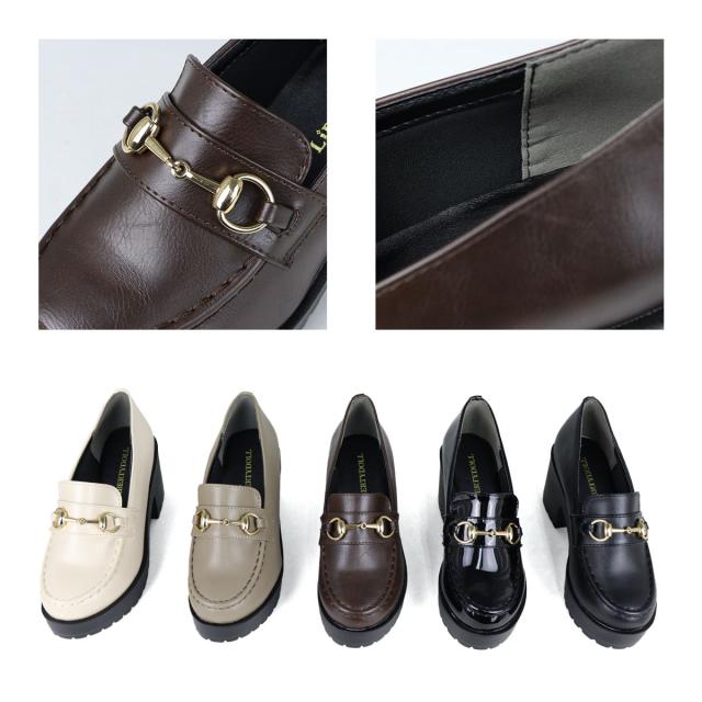 ビットローファー レディース 厚底 ラウンドトゥ タンクソール 軽量 美脚 8cmヒール 22.0cm〜24.5cm 黒 ブラック 茶 ダークブラウン グレージュ 白 アイボリー LiBERTYDOLL リバティードール No.3038
