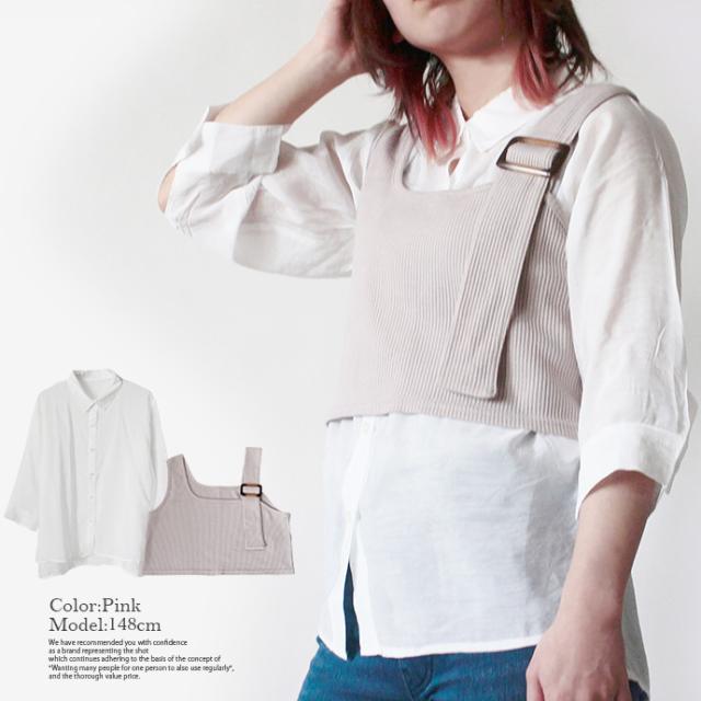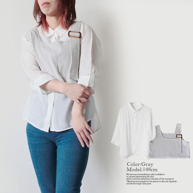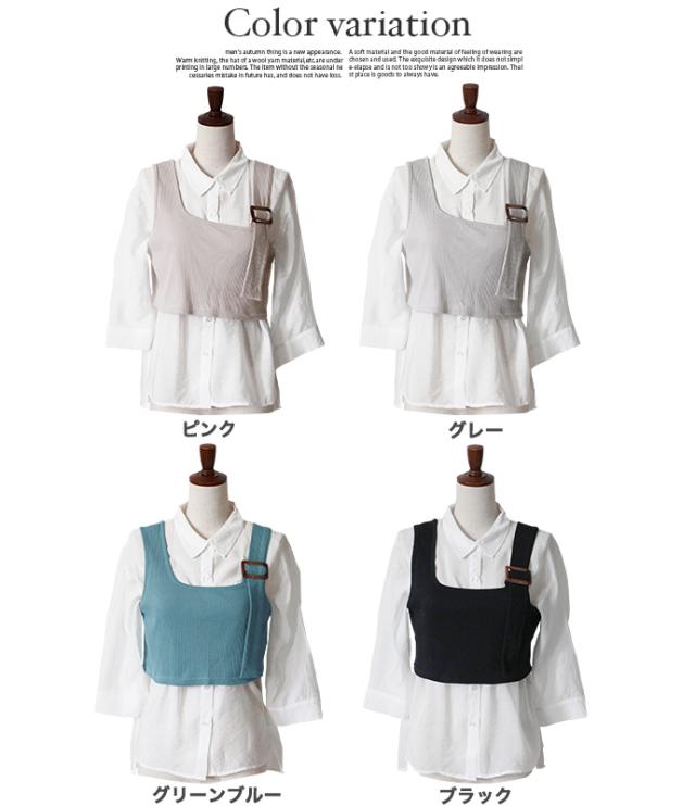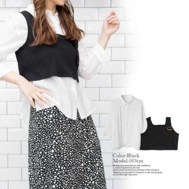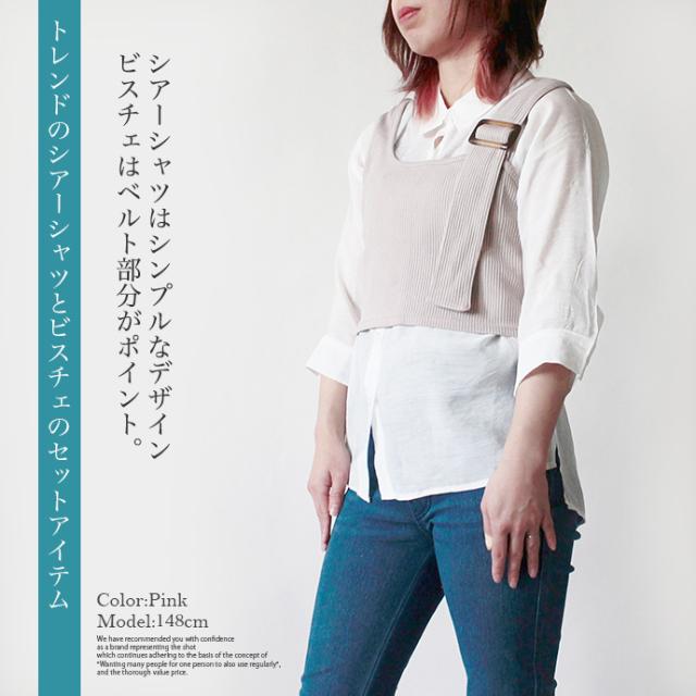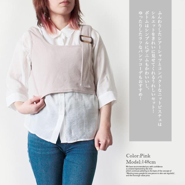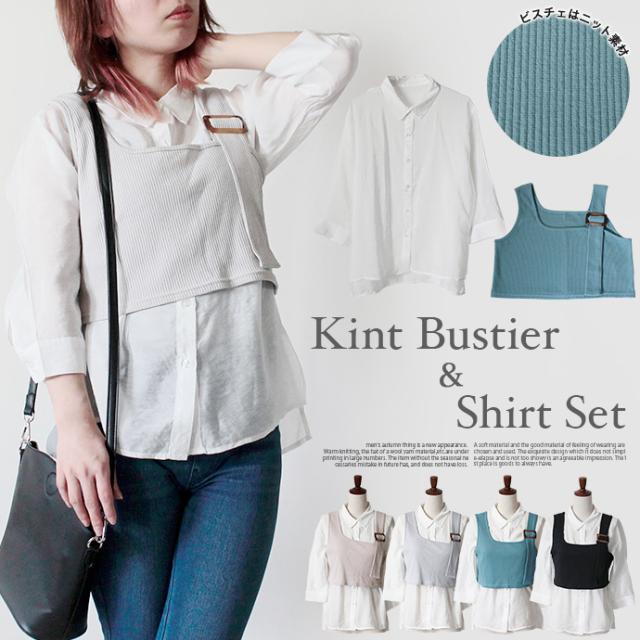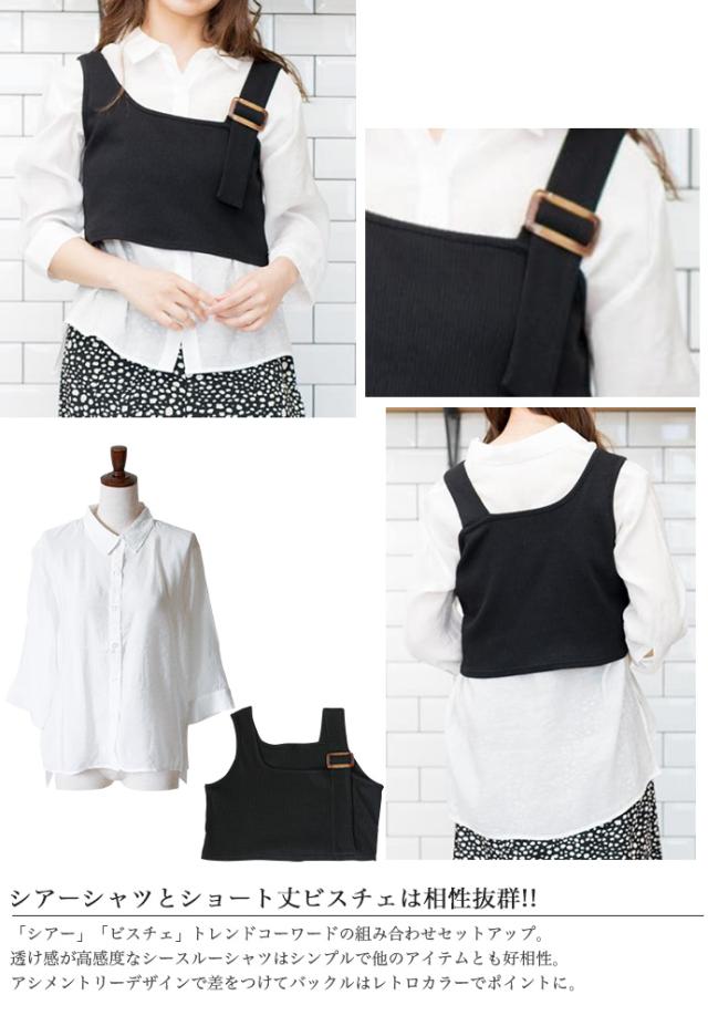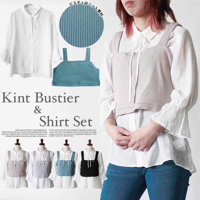 レディース トップス 2点セット シャツ ビスチェ シアーシャツ ニットビスチェ アンサンブル 袖コンシャス 重ね着 (メ)