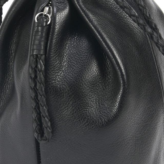 シンプルな大人のレザー巾着バッグ丸いフォルムがコロンと遊び心を演出するレザー巾着バッグ。
