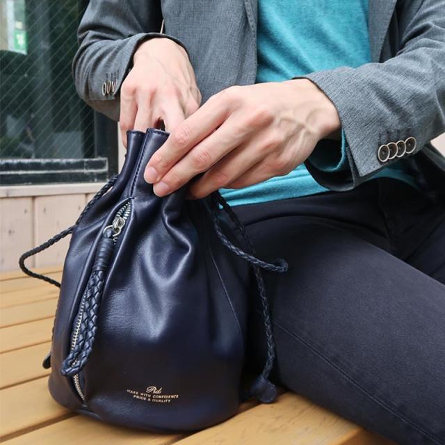 巾着バッグ ショルダー メンズ 本革 Pid レザー巾着バッグ nemus 巾着 バッグ 革 レザー 巾着バック 小さめ コンパクト ショルダーバッグ 大人 男性 女性 レディース おしゃれ シンプル 和装 着物 浴衣 【送料無料】