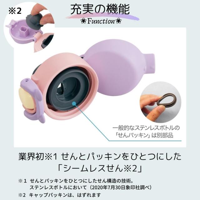 ※1せんとパッキンをひとつにしたせん構造の技術。ステンレスボトルにおいて(2020年7月30日象印社調べ)