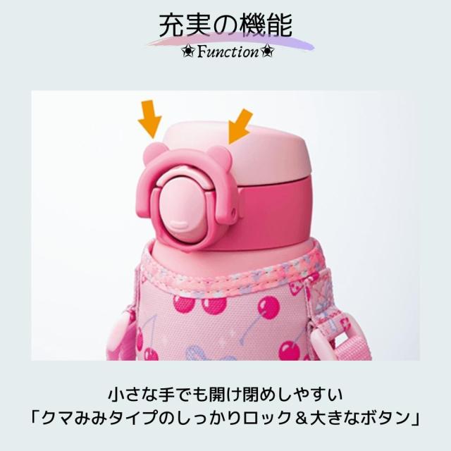 小さな手でも開け閉めしやすい「クマみみタイプのしっかりロック&大きなボタン」