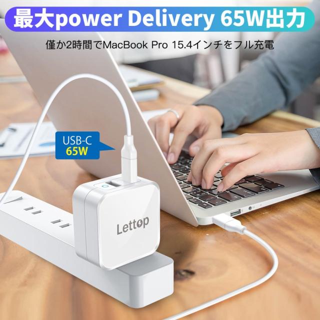 Type C対応デバイスに最大65Wの出力で急速充電可能です。