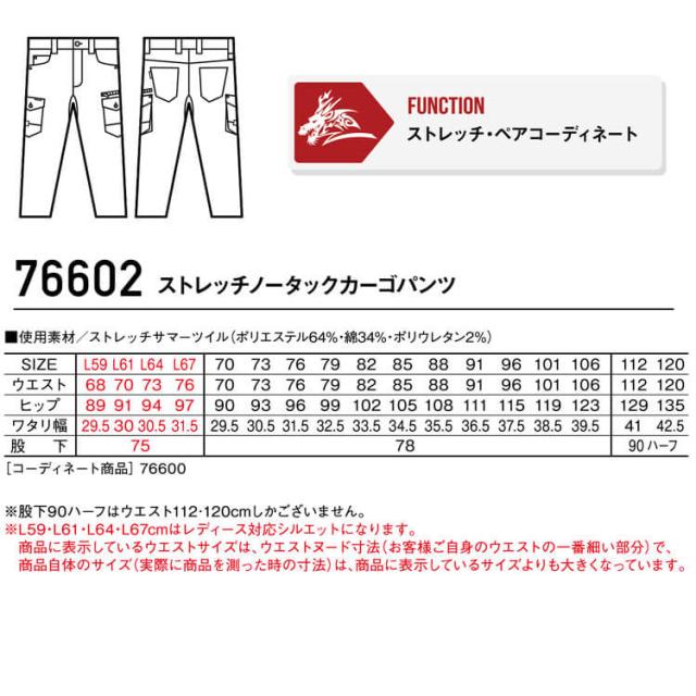 Z-DRAGON ジードラゴン ストレッチノータックカーゴパンツ 76602 春夏 作業服 自重堂