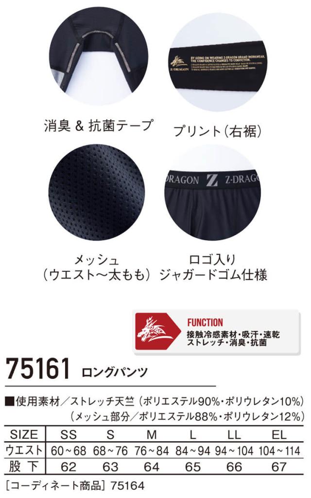ジードラゴン Z-DRAGON 接触冷感 ロングパンツ 75161 作業着 作業服 コンプレッション インナー 自重堂
