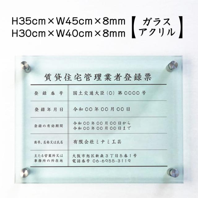 業者票 賃貸住宅管理業者登録票 ガラスアクリル8mm H30×W40cm H35×W45cm 許可票 宅建 不動産 法定看板 事務所 rent-glass-acryl01