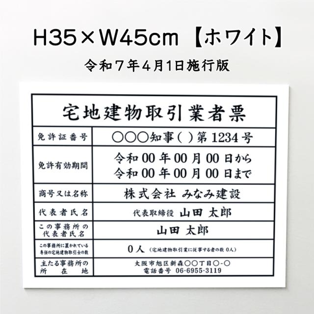 業者票 宅地建物取引業者票【令和7年4月1日施行版】 アルミ複合板 ホワイト H35×W45cm 許可票 宅建 法定看板 事務所 金看板 tk-white