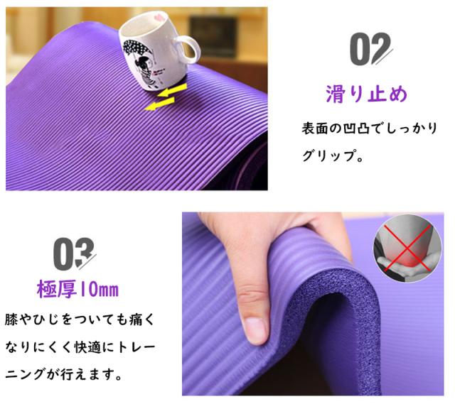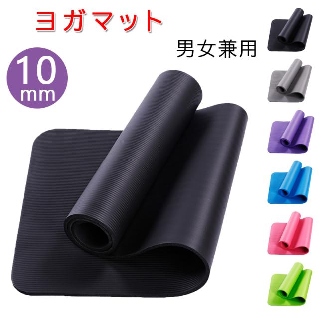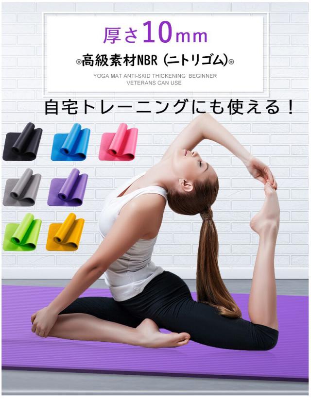 送料無料 ヨガマット 10mm 幅広 ワイド 極厚 厚手 大判 厚手 NBR ピラティス 筋トレ ストレッチ トレーニング ダイエット ストレッチマット エクササイズマット 体幹 軽量 初心者 上級者 極厚 定番 モデル 男女兼用