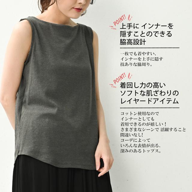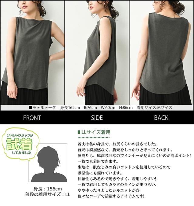 インナー ノースリーブカットソー cotton100 カジュアル おしゃれ 大人 ゆったりサイズ ぽっちゃり女子 プラスサイズ