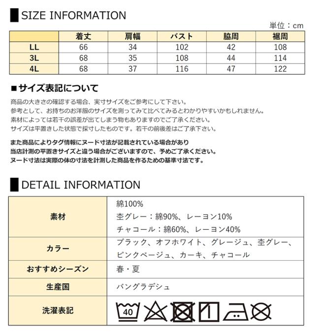 3L:着丈68 肩幅35 バスト108 脇周44 裾周114