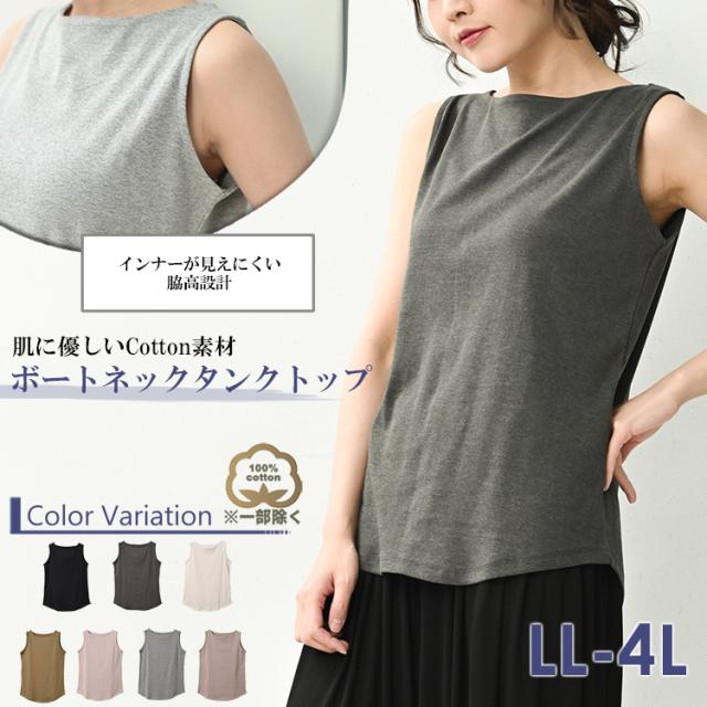 大きいサイズ レディース タンクトップ ボートネック ノースリーブ 無地 カラバリ豊富 トップス cotton100 LL/3L/4L ゆったりサイズ ぽっちゃり女子 プラスサイズ メール便送料無料