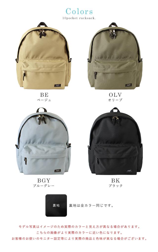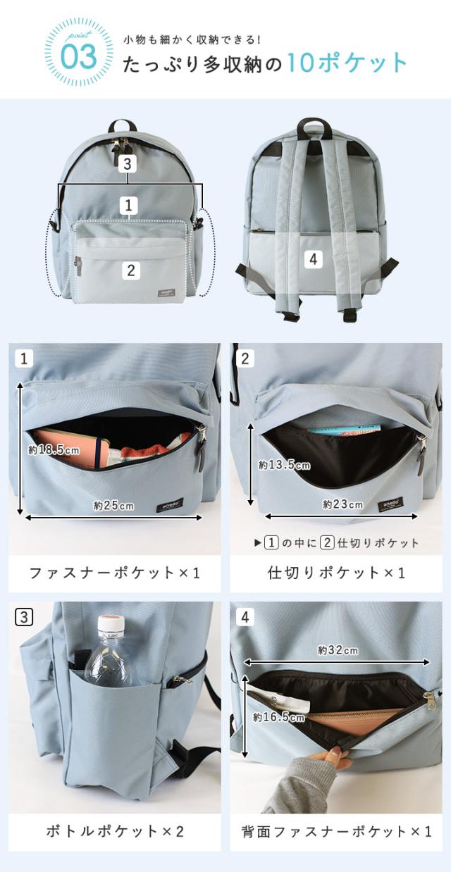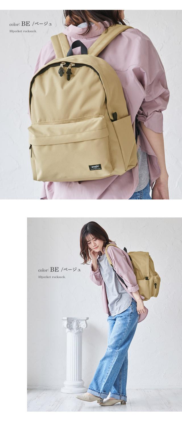 リュック アネロ リュックサック バックパック レディース 女子 メンズ A4 PC収納 丈夫 軽量 軽い 男女兼用 ユニセックス 撥水 大容量 多収納 大きめ 10ポケット 通勤 通学 ママバッグ 旅行 収納 ファスナー シンプル カジュアル 大人 おしゃれ anello 【s0665】