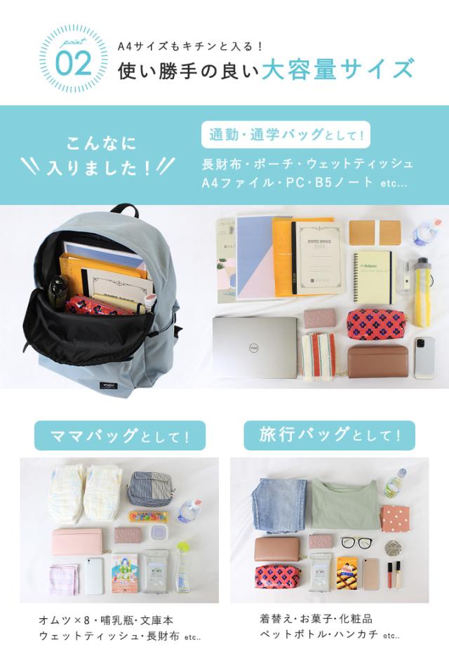 通勤・通学・ママバッグ・一泊旅行など幅広いシーンで大活躍します◎