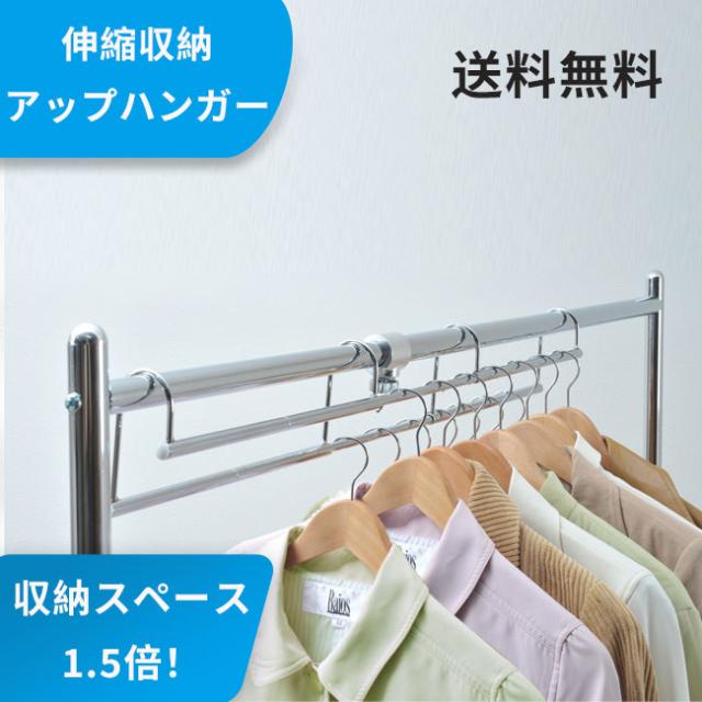 ハンガー 衣類収納アップハンガー【あす着】 伸縮式 ハンガーラック シルバー 日本製 コート収納 段違い コート掛け パイプハンガー クローゼット 整理 省スペース 洋服 衣替え 礼服 制服 収納用品 おしゃれ )SH-05