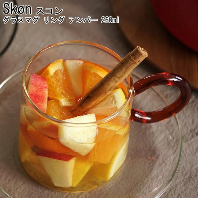 スコン グラスマグ リング アンバー HS3072 マグ マグカップ あす着対応 コップ グラス ティーカップ 食器 洋食器 耐熱ガラス クリアー 透明 コーヒー 紅茶 ティー 持ち手付き 手付き 型吹き 食器 オシャレ おしゃれ お洒落 かわいい 北欧 アクシス AXCIS Skon 送料無料