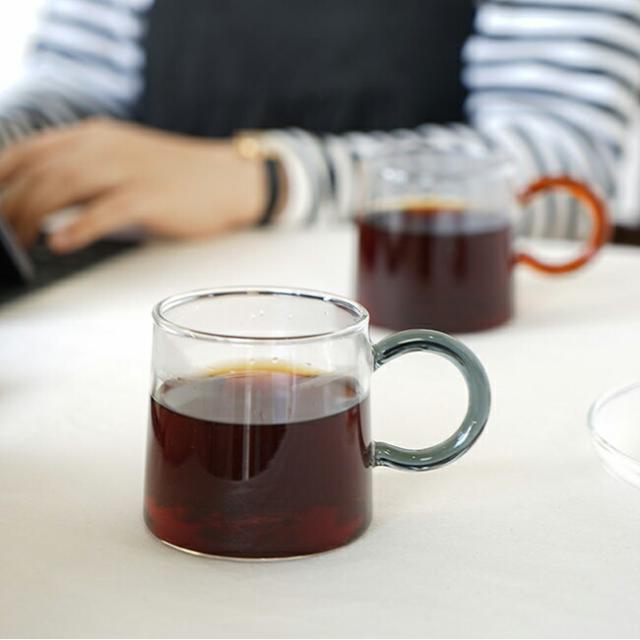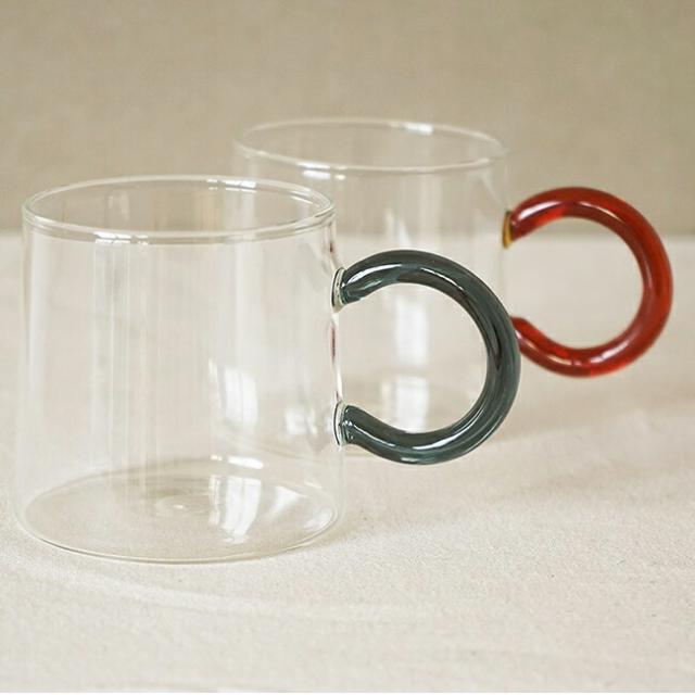 「スコン グラスマグ スクエア」は持ち手付きのガラス製カップ。