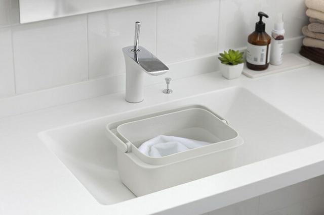 洗面台で水が入れやすく、浸け置き・掃除にちょうどいいコンパクトサイズ。