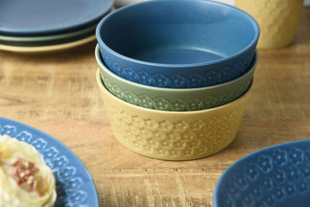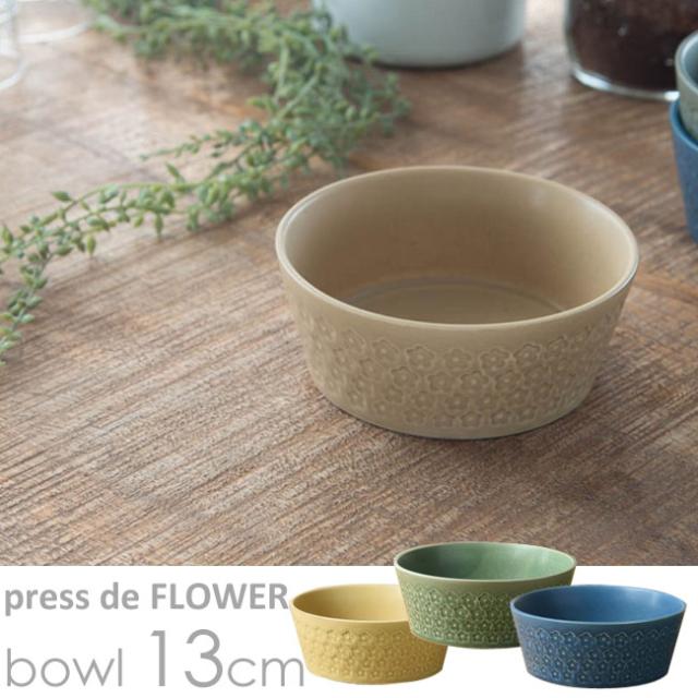 美濃焼 プレス・ド・フラワー 切立ちボウル 13cm 選べる4色 / 花柄 ボール ボウル 北欧風 美濃焼き 日本製