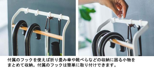 付属のフックを使えば折り畳み傘や靴べらなどの収納場所に困る小物をまとめて収納できます。