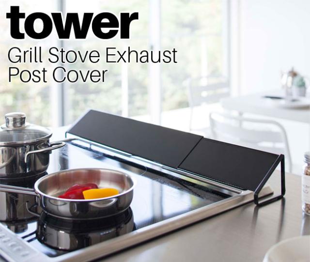 山崎実業 排気口カバー タワー ※43〜80cmまで対応 tower 選べる2色 ホワイト ブラック 02454 02455 伸縮 コンロカバー コンロ奥カバー 排気口ガード 油はね 汚れ防止 キッチン雑貨 掃除 台所用品 モノトーン おしゃれ 北欧 YAMAZAKI ヤマジツ あす着