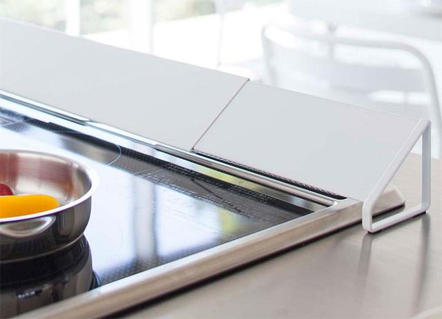 お掃除の大変なコンロの排気口。油がはねて汚れるのをガードする排気口カバー。