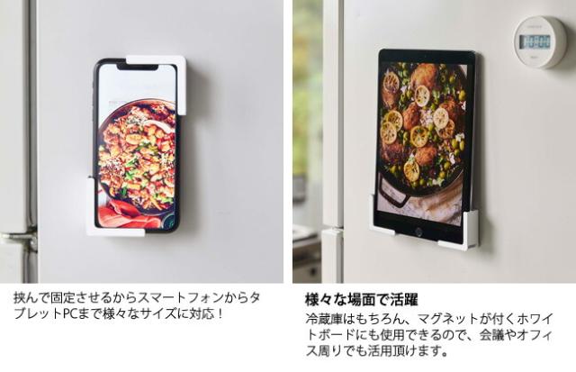 挟んで固定させるからスマートフォンからタブレットPCまで様々なサイズに対応!