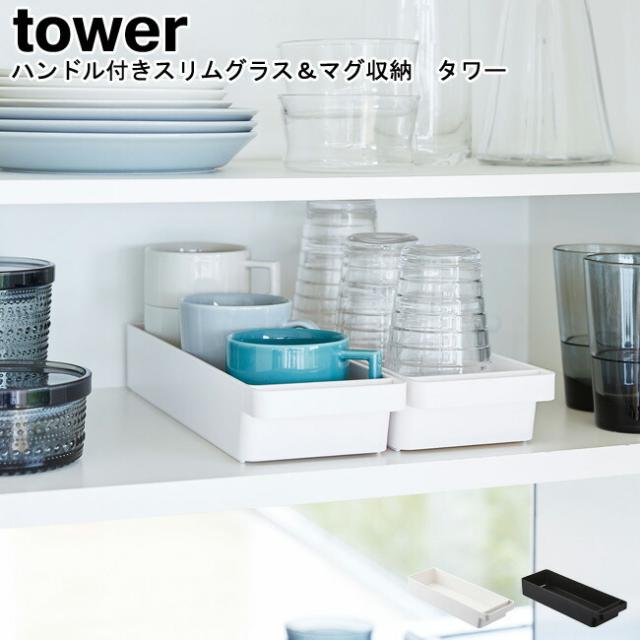 MM1 ハンドル付きスリムグラス&マグ収納 タワー 山崎実業 tower 選べる2色 ブラック ホワイト 04708 04709 カトラリーケース 食器棚 グラス コップ 調味料ラック キッチン収納 収納 YAMAZAKI ヤマジツ