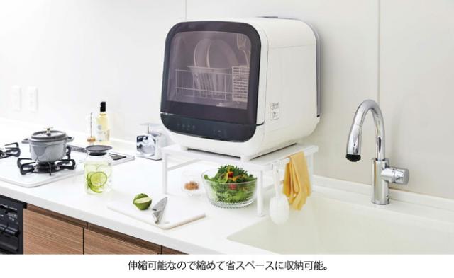 工事不要の小さい食洗機も、丁度良いサイズに縮めて省スペースに収納可能。