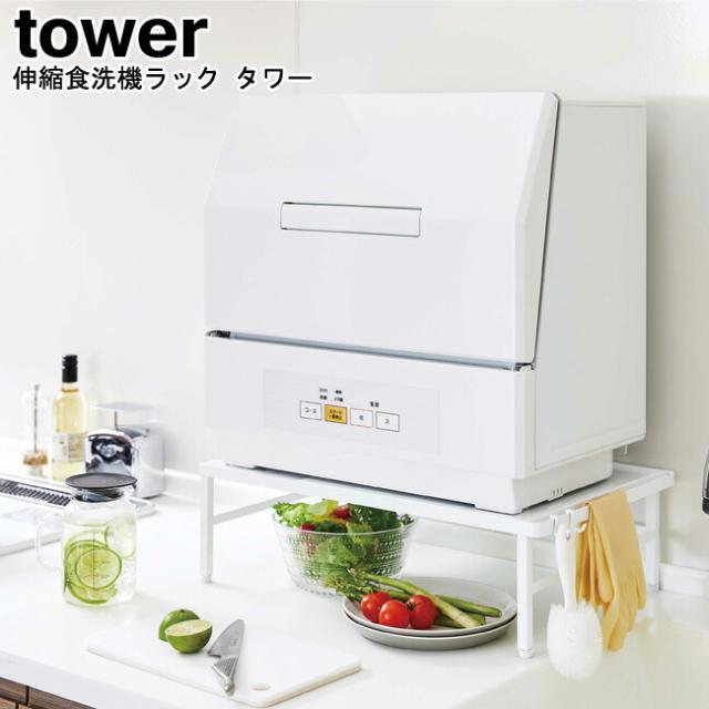 MM1 伸縮食洗機ラック タワー 山崎実業 tower 選べる2色 ブラック ホワイト 05181 05182 食洗器ラック 食洗器台 食器洗浄機 ラック 食洗器 収納 伸縮 YAMAZAKI ヤマジツ 送料無料