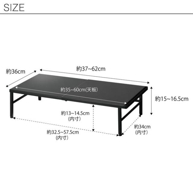 | 内寸 | ラック下約W32.5〜57.5cm×34cm×13〜14.5cm |