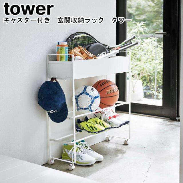 MM1 キャスター付き 玄関収納ラック タワー 山崎実業 tower ホワイト ブラック 05278 05279 ラック シューズラック 玄関収納 ボールスタンド 収納 小物入れ ボールスタンド 遊具収納 キャスター付き シンプル スタイリッシュ モノトーン おしゃれ YAMAZAKI ヤマジツ