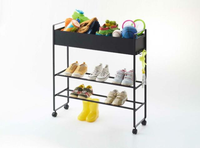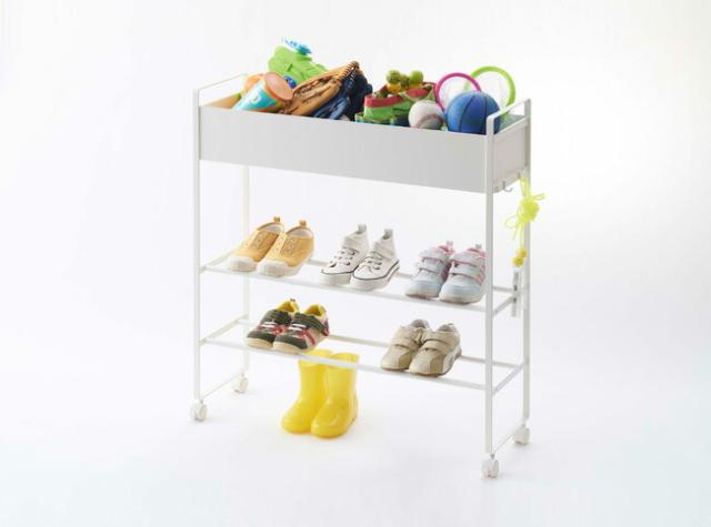 ![]() お子様の遊具や靴、ボールなどを玄関にスッキリ収納できるキャスター付き収納ラックです。 小さな子供から大人まで長い期間成長に合わせて使用できる収納ラック。ボールやラケットの収納にもピッタリ。プランターやガーデニング用品の収納にも。お子様のおもちゃや靴の収納に便利。便利な可動式の仕切り板付き。キャスター付きで掃除も楽々。付属のフックで小物を引っ掛けて収納ができます。