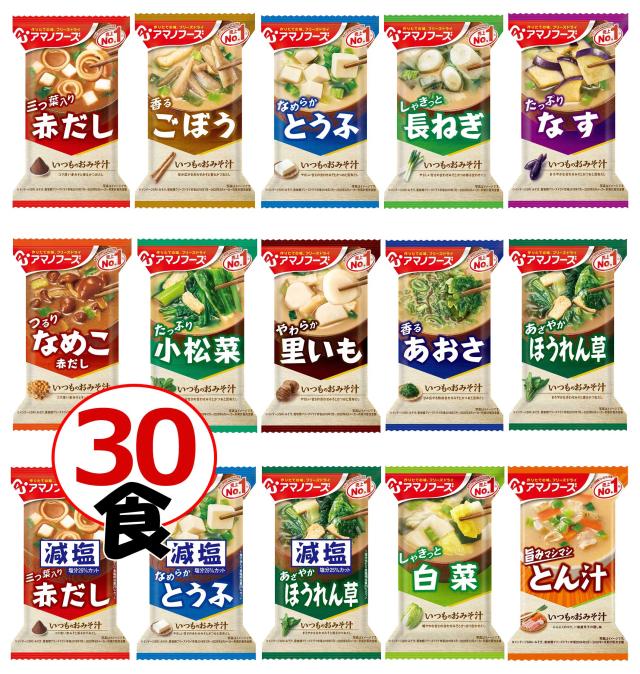 [am] 味噌汁 フリーズドライ アマノフーズ おまけ付 いつものおみそ汁 15種類30食セット 父の日 敬老の日 (フリーズドライ 即席 味噌汁 ラッピング対応 [I30] プレゼント 送料無料