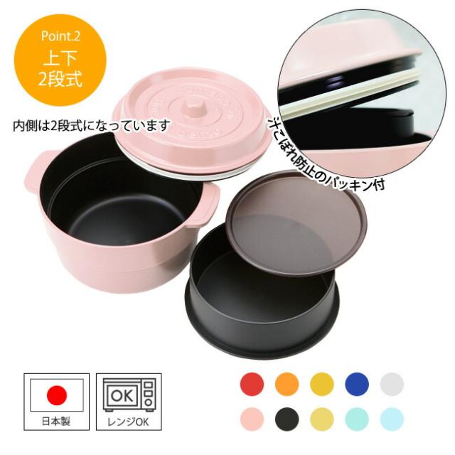 弁当箱 ココポット 2段 530ML あす着 ラウンド ランチボックス 選べる10色 レディース お弁当箱 お弁当 2段式 ココット ボウル おしゃれ かわいい 二段 SNS 映え ミニココット 鍋型 遠足 運動会 竹中 丸 円形 レンジ対応
