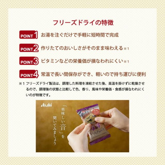 関連キーワード:アサヒグループ 天野フーズ アサヒグループ食品 アサヒ アマノ 天野実業 味噌汁 お味噌汁 みそ汁 手軽 簡単 楽々 時短 朝食 朝ごはん かんたん フリーズドライ ドライフーズ お試し ええもん 選べる どんぶり 丼 雑炊 お粥 惣菜 お惣菜 ごはん スープ お吸い物 和食 お試し 洋食 リゾット あまのふーず ギフト 母の日 父の日 敬老の日 誕生日 御祝 内祝 お祝い 内祝い 贈り物 プレゼント 店 人気 話題 注目 メディア テレビ インスタ ブロガー ブログ 正規 正規品