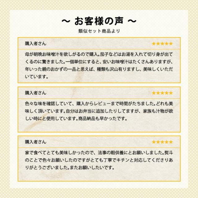 - 手軽に美味しいみそ汁が食べられて重宝しています。