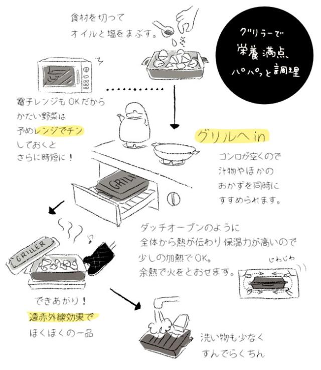| その他 | グリラー:直火、オーブン、トースター、電子レンジ、魚焼きグリル使用可能。 IH調理器、食洗機使用不可。 |
