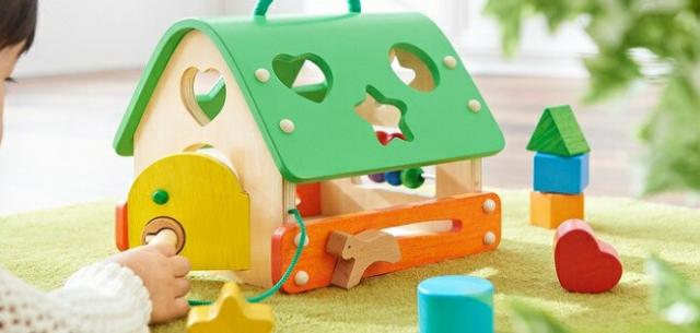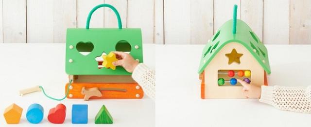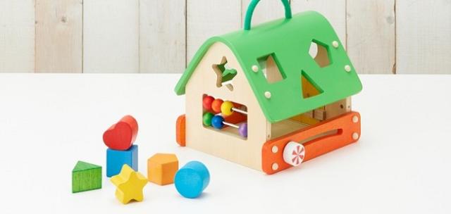 鍵あそび、そろばんが楽しめるおうち型、型はめボックス