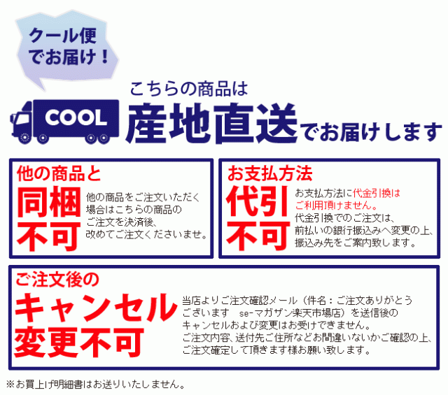| 内容 | うなぎ蒲焼(国産・養殖)60g×6、たれ×6、山椒×6、いか明太140g×2 |