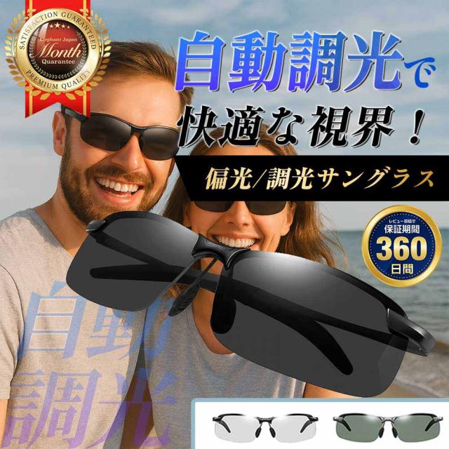 サングラス メンズ 偏光 調光 UVカット 偏光サングラス 偏光調光 メガネ 曇り止め付き