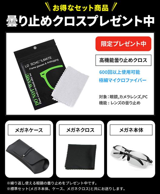 セット内容 : 眼鏡本体,ケース,クロス,メガネの曇り止め(期間限定)