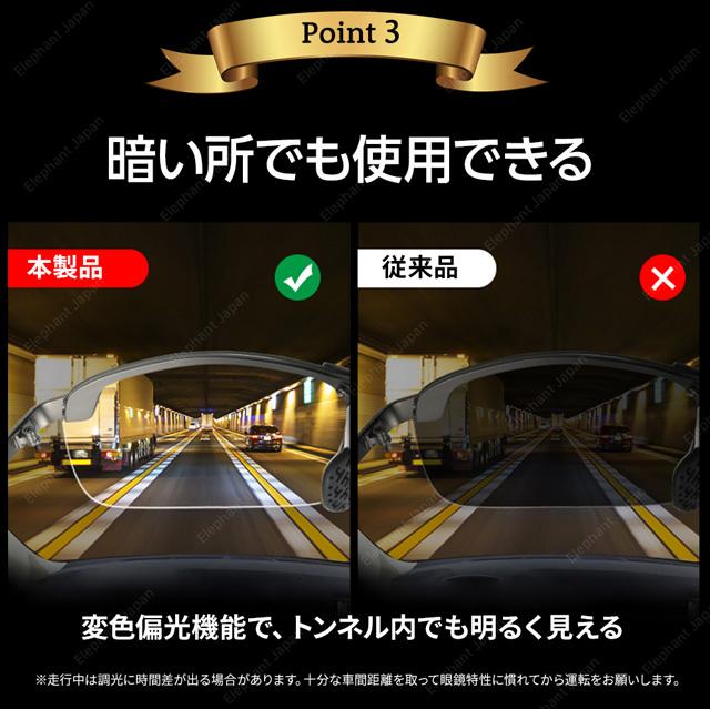 | 【注意事項】 | ※走行中は調光に時間差が生じる場合があります。十分にご注意のうえご使用ください。 ※商品の画像はお客様がご覧になっているモニター・画面環境・照明などの関係上、実際の色味と多少異なる場合がございます。 ※万一不具合がございましたらサポートまでご連絡ください。 |