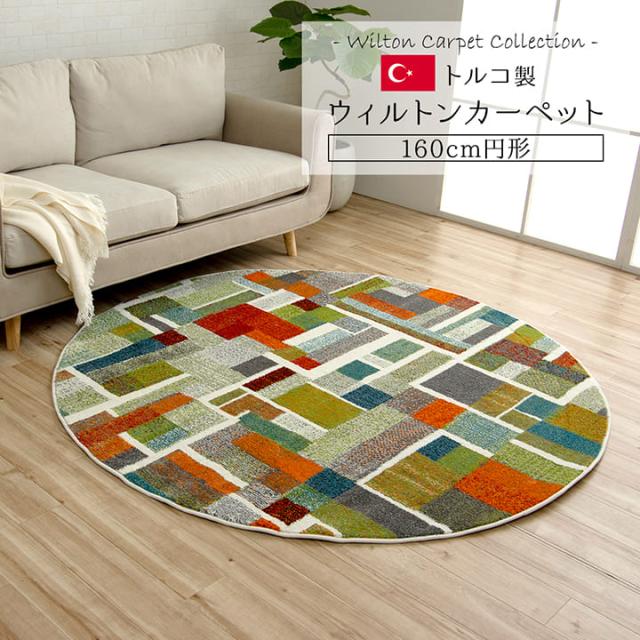 ラグ 円形 カーペット 円形ラグ 2畳 トルコ ウィルトン織 冬 160 丸 冬用 おしゃれ 抗菌 防臭 絨毯 ラグマット 幾何柄 丸型 パイル ホットカーペット 床暖房対応