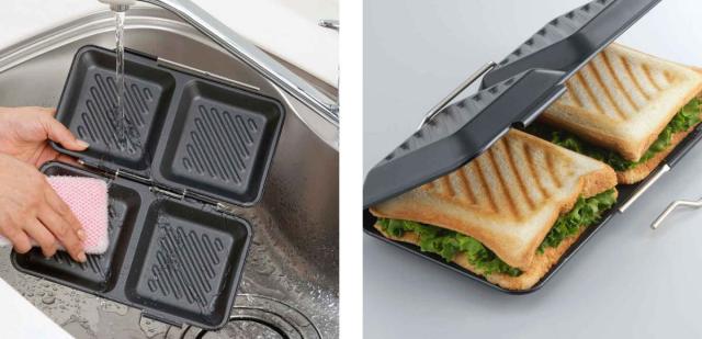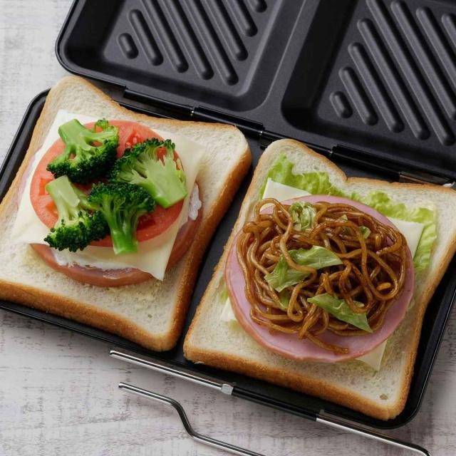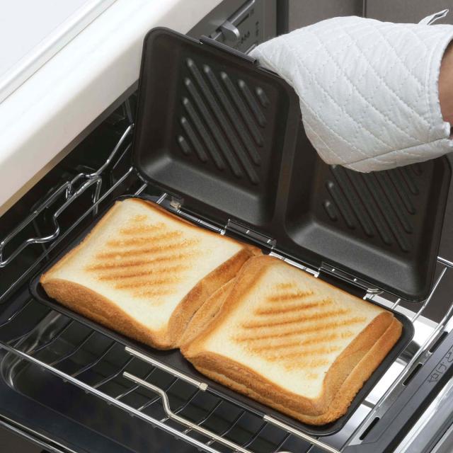 魚焼きグリルやオーブントースターで使えるホットサンドパンです。お弁当や朝食作りの忙しい朝にコンロがふさがっている時でもグリルでホットサンドが手軽に作れます。