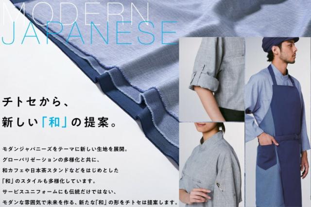飲食店ユニフォーム 和風 胸当てエプロン チトセ アルベ arbe エプロン DN-8813 前掛 首掛け 制服 レストラン カフェ サービス業