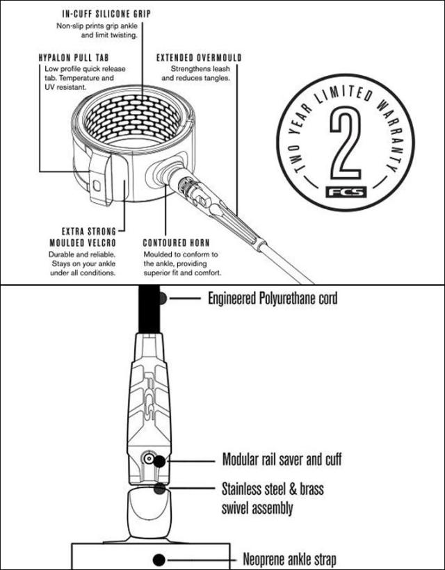 FCS エッセンシャルシリーズのリーシュは、革新的で話題のフリーダムリーシュから着想を得て、あらゆる状況に対応できる軽量で耐久性に優れた超快適なリーシュに進化。